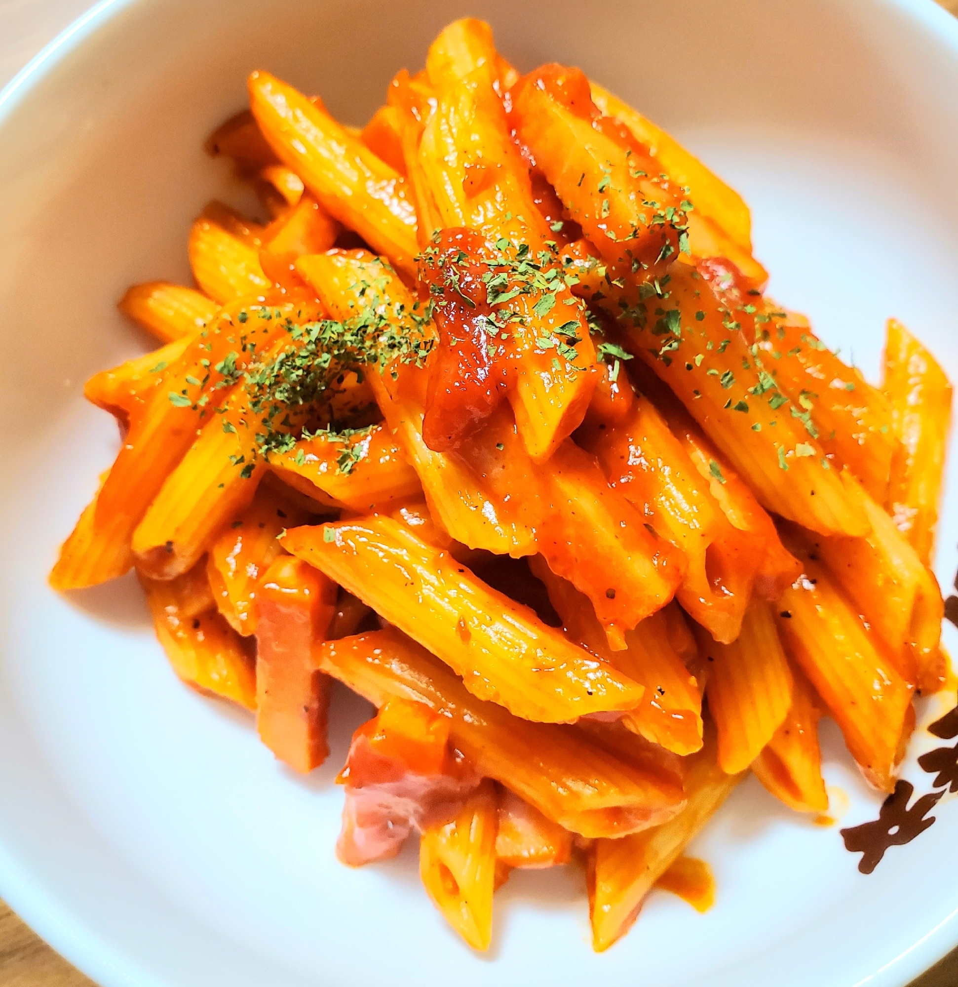 ポークランチョンミートで簡単 ペンネ アラビアータ 九州の郷土料理と簡単まかないレシピ
