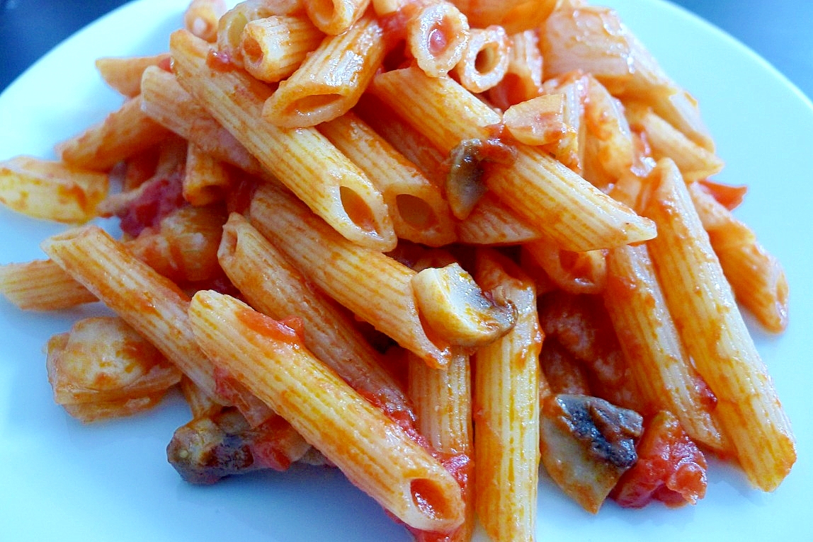 トマトソースとショートパスタが絡み合う 簡単おいしいペンネアラビアータのレシピ はらぺこグリズリーの料理ブログ