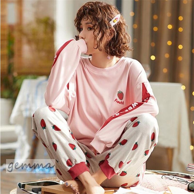 パジャマ ルームウェア レディース 春夏秋冬 いちご柄 イチゴ パジャマ可愛い 長袖 綿 ルームウェア 女性 部屋着 寝巻き 新作 Qaz108 Gemma 通販 Yahoo ショッピング
